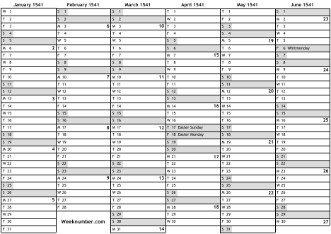 1541 calendar