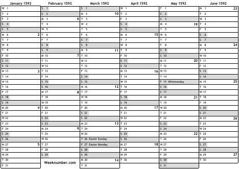 1592 calendar