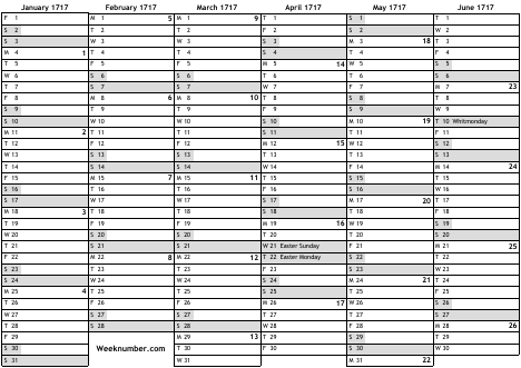 1717 calendar