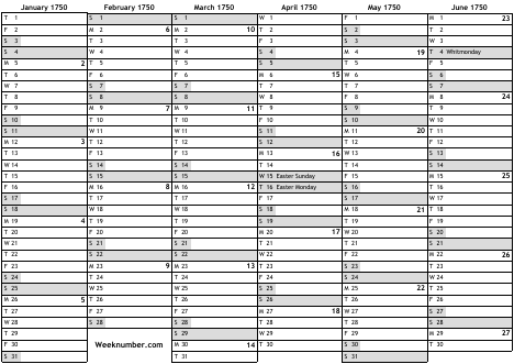 1750 calendar