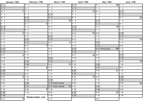 1780 calendar
