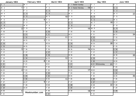 1804 calendar