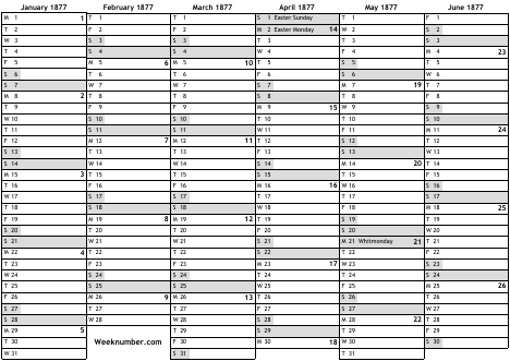 1877 calendar