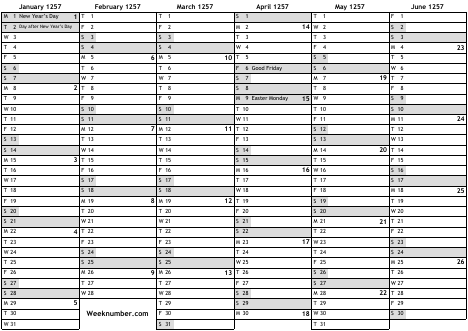 1257 calendar
