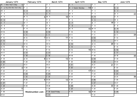 1274 calendar