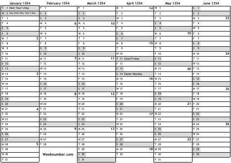 1354 calendar
