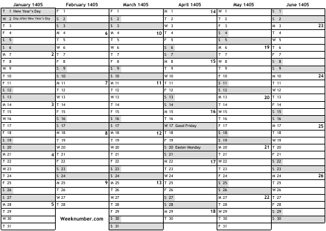 1405 calendar