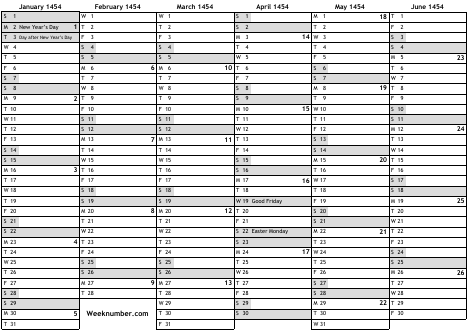 1454 calendar