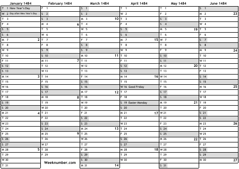 1484 calendar