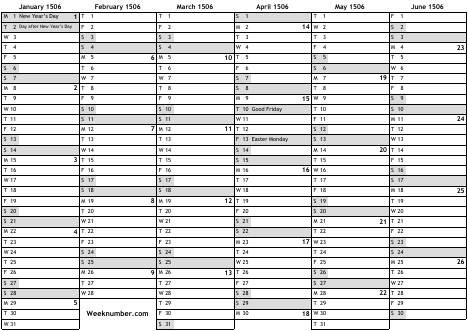 1506 calendar