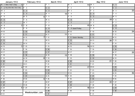 1512 calendar