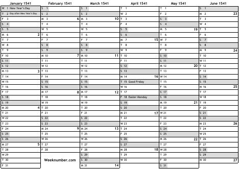 1541 calendar