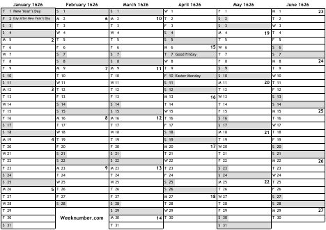 1626 calendar