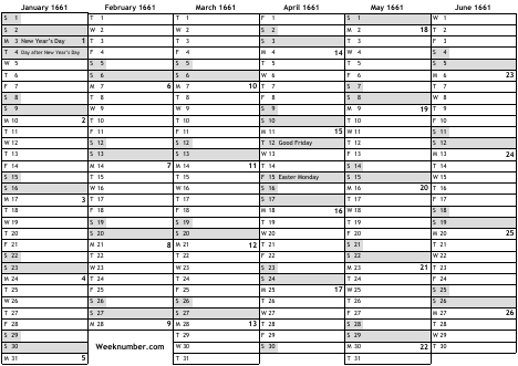 1661 calendar