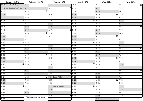 1676 calendar