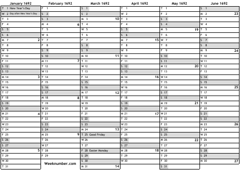 1692 calendar