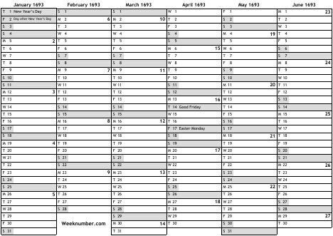 1693 calendar