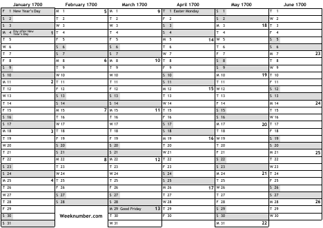 1700 calendar