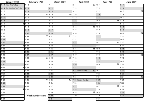 1709 calendar