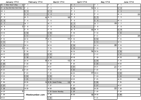 1714 calendar