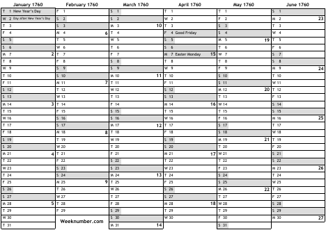 1760 calendar