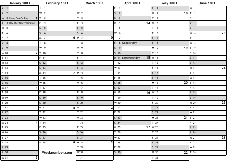 1803 calendar