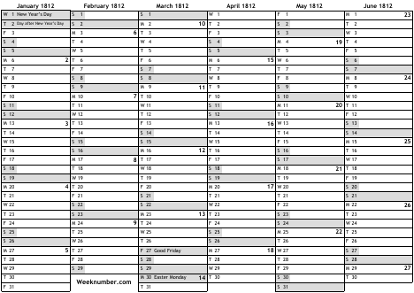1812 calendar