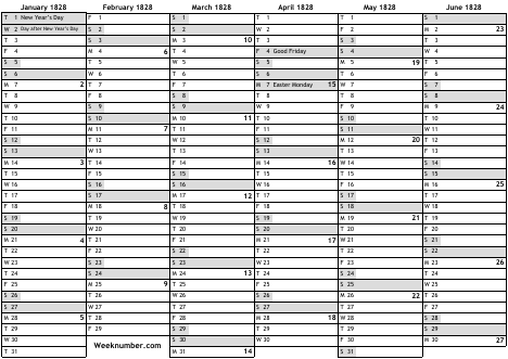 1828 calendar