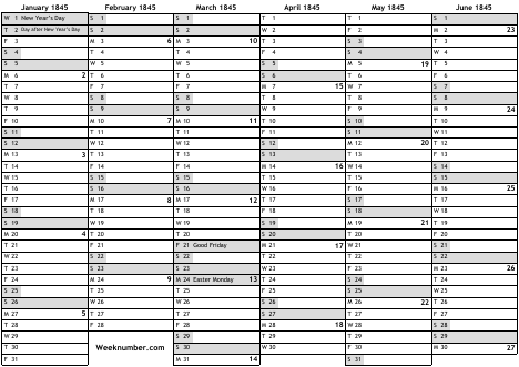 1845 calendar
