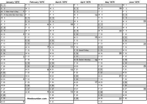 1870 calendar