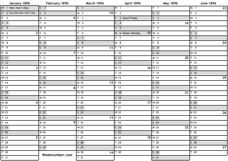 1896 calendar
