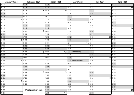 1321 calendar
