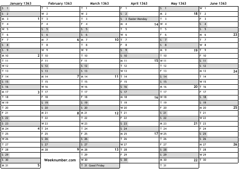 1363 calendar