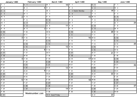 1480 calendar