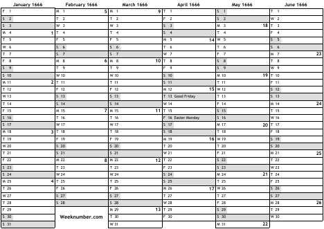 1666 calendar