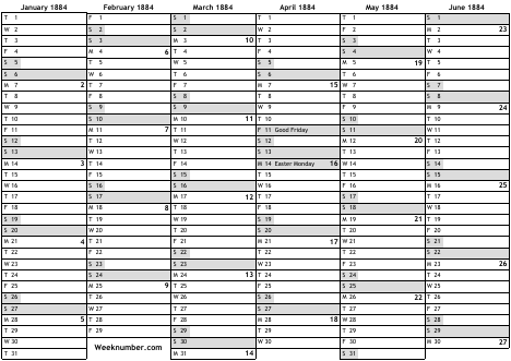1884 calendar