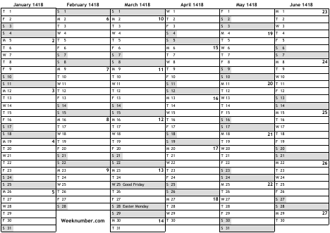 1418 calendar