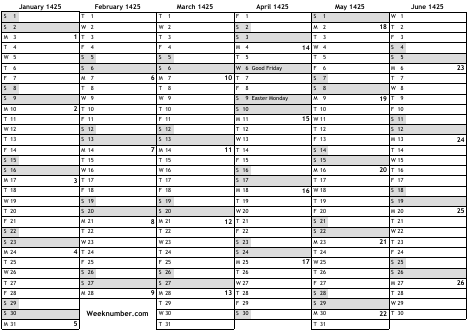 1425 calendar