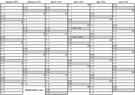 1574 calendar