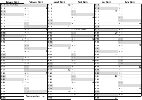 1232 calendar