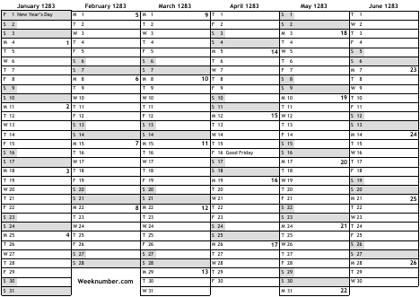 1283 calendar