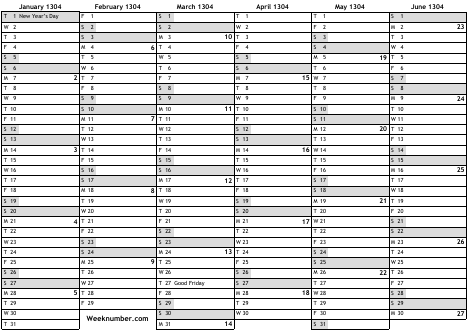 1304 calendar