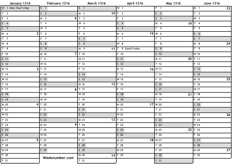 1316 calendar