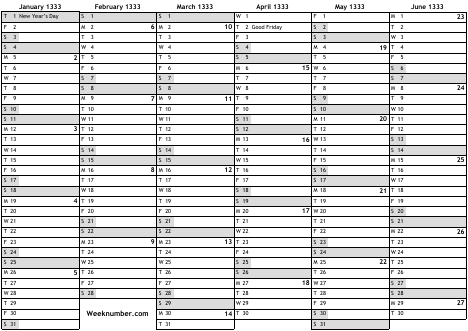 1333 calendar