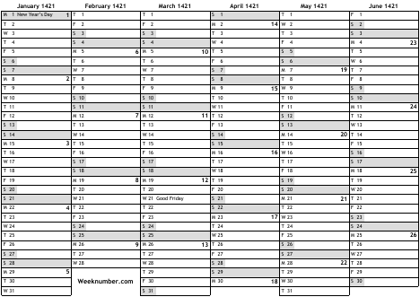 1421 calendar