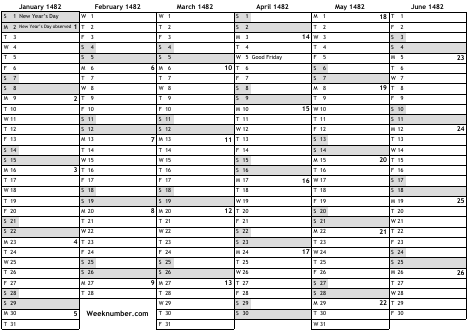 1482 calendar