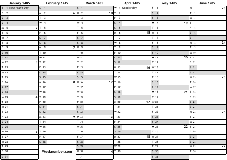 1485 calendar