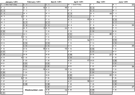 1491 calendar