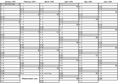 1494 calendar