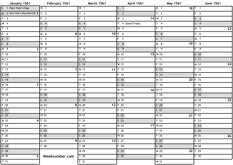 1561 calendar